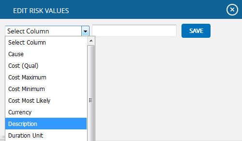 - Select the column , enter the values to be edited and click the SAVE button in the EDIT RISK VALUE pop up that appears. (Figure 17)